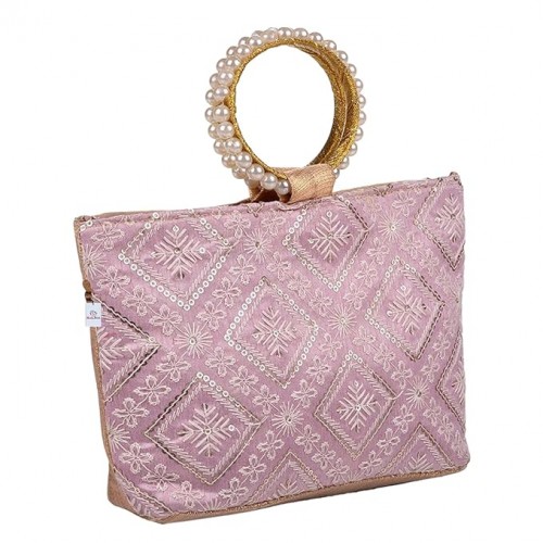 Heart Home Clutch Bag | Zig Zag Chicken Silk Embroidery | Moti Churi Handle | Hand Purse for Woman | Party Bags for Woman | Wedding Clutch Purse | Purple